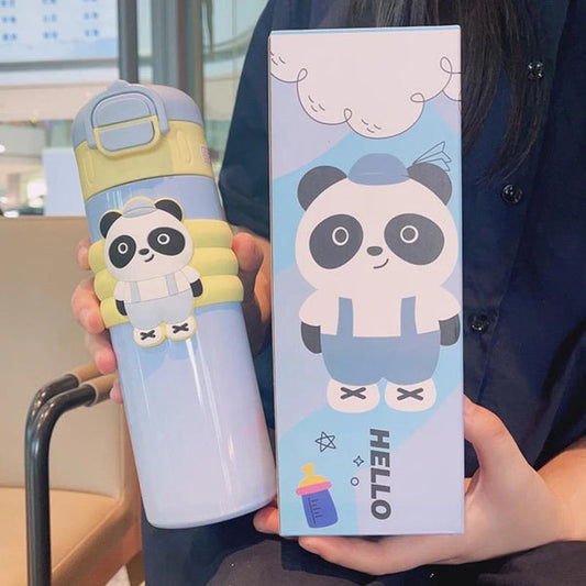 Panda Dual Sipper Steel Insulated Water Bottle for Kids 520ml
